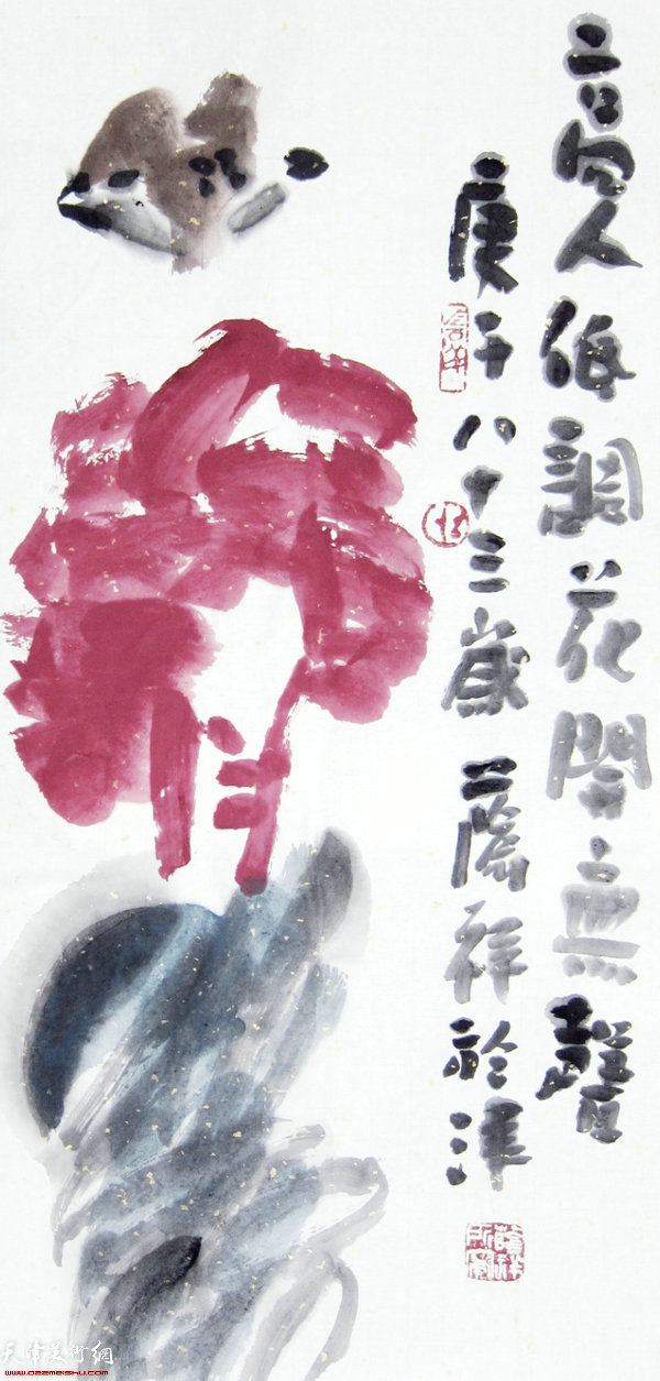刘老的艺术触角涉及甚广,他的大写意花鸟画不仅仅是技巧的写意,也不仅仅是花鸟鱼虫,也不仅仅世俗烟火,而是除了花鸟鱼虫和世俗烟火之外,探向了更广阔的宇宙和人生。