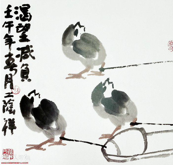 情趣是生命的表现、生命的欢乐方式。能描绘出真实情趣的画家,多是富于爱心和敏于生命欢乐的艺术家。历代画家,能捕捉生命情趣者不多。齐白石当之无愧,之后的画家当中,屈指算来,刘荫祥老师不可或缺。如他的作品,“小时默默无闻,长大一鸣惊人”,那是生命成长的情趣,这中间隐藏着人性励志奋斗的精神。同时,又能唤起我们对幼小生命艰辛成长的精心呵护。此景此情,我们能否感受到刘荫祥老师用情趣表达生命的境界呢?