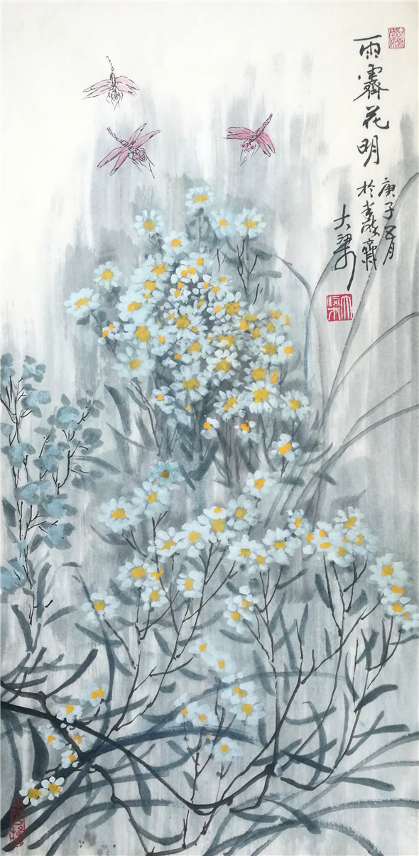 当时大梁给赵先生提供几幅之前的作品。大梁此前依好友艺术评论家杨晓明的意见画了一些北方菜蔬与野花。