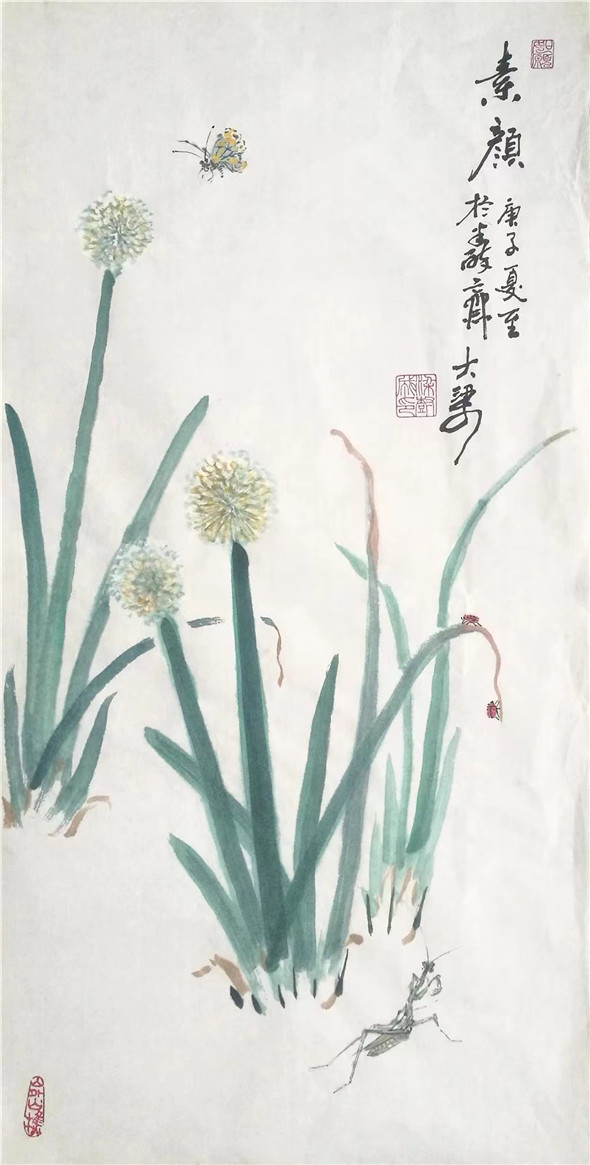 选几幅大梁的有关作品,看看从生活采撷的艺术之花有多么生机勃勃!大梁先生还画过菜地的茄子辣椒西红柿,大葱花白菜花。他说,"喜欢画生,有挑战性,有激情。总画那么几样,自己都画腻了,观者看着也没劲。画家确实应该有自己的主打品种,但也要细心体验生活,对能启发自己灵感的事物,细心观察,提练其精神本质,再去运用已的手段努力表现它。虽然不一定下笔便成功,但总会有所得,至少比墨守陈规好。”