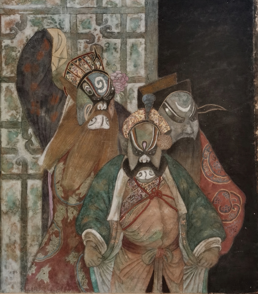 在画面中,魏秀玲巧妙地运用了冷暖色调的对比与调和,通过背景与人物服饰的色彩差异营造出一种独特的艺术张力。例如深红色背景与人物亮丽的服饰色彩对比,使得人物形象在画面中愈加鲜明,而在同一色调的微妙变化中,又使得整个画面具有一种协调的美感。色彩的运用不仅是视觉的愉悦,更赋予了画面以“气韵”的流动,仿佛在色彩的层层叠加中,展现出传统与现代的碰撞与融合。
